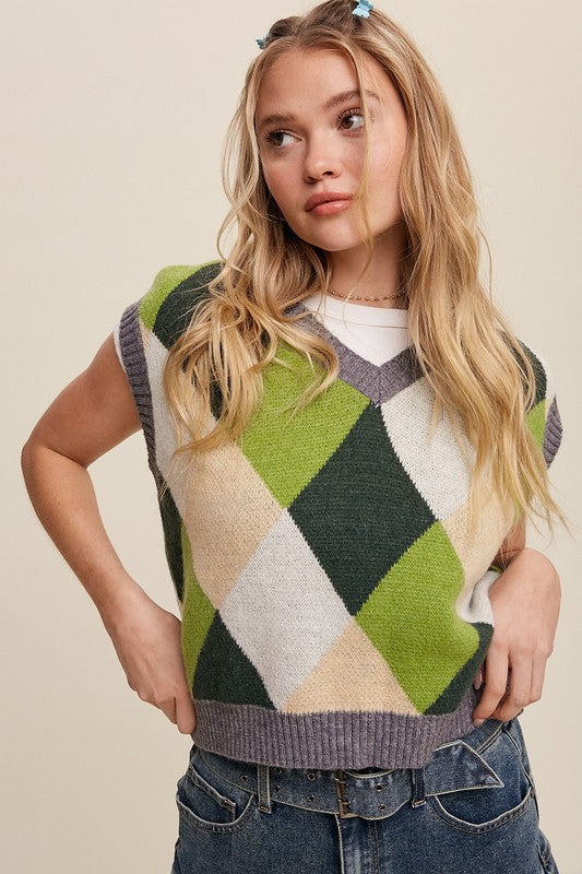 Abstract Ruffled Trim Tied Split Neck Tank Top
