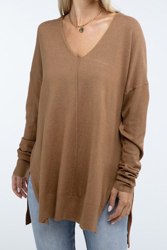 The Hi-Low Hem Front Seam Sweater is a soft, garment-dyed piece designed for ultimate comfort and style. It features a relaxed fit, making it perfect for casual wear. The ribbed hem and cuff sleeves add a touch of classic detail, while the hi-low hem and front seam create a modern, flattering silhouette.