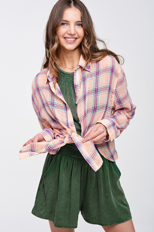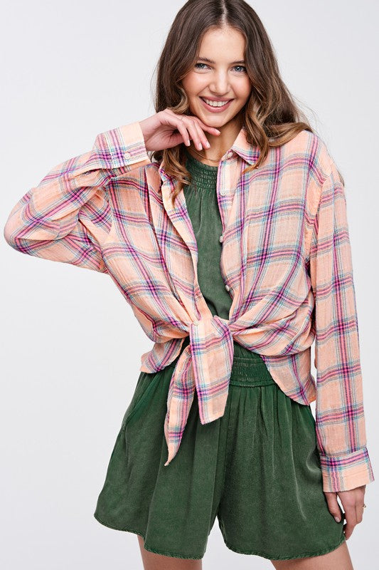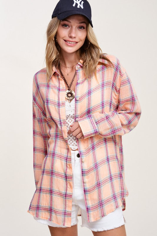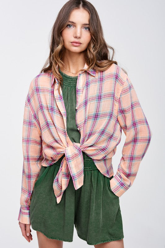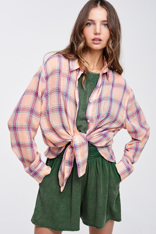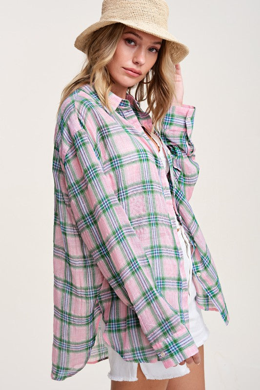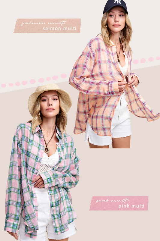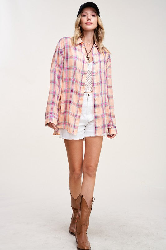 A bold and stylish button-down shirt that effortlessly blends fashion and comfort. This shirt features a striking plaid print and is designed with a relaxed fit, making it a versatile addition to your wardrobe.