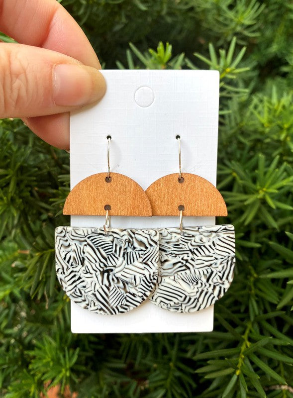 These deco earrings are a Baubles by B exclusive statement earrings. Lightweight wood and acrylic in eye catching shapes make these a stunner